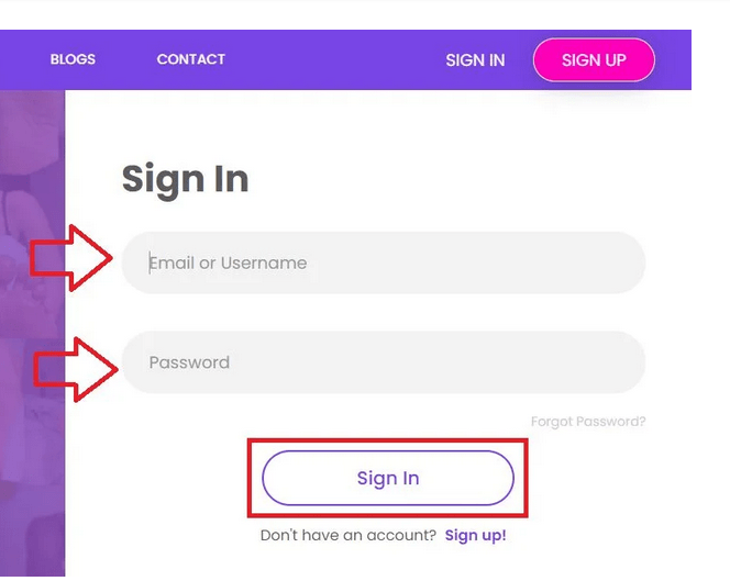 Después de completar lo anterior, el sistema te redirigirá a una nueva página y en ella, tienes que completar los campos correspondientes para acceder. En efecto, ingresa tu dirección de email registrada o el “username” e introduce la contraseña que asignaste a tu cuenta FeetFinder.