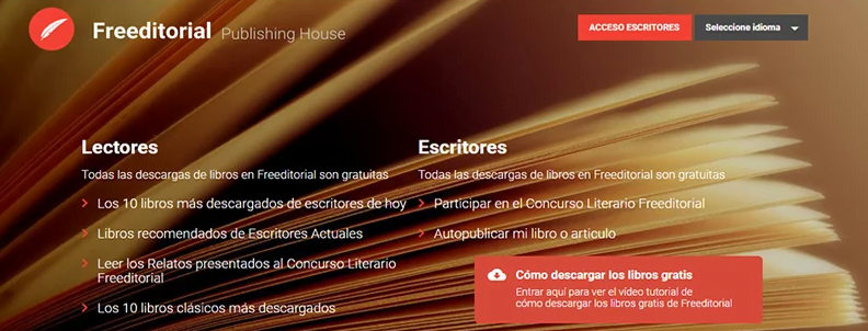 La primera que vamos a mencionar es la que más repercusión está generando hoy en día en el rubro, sobre todo por algunas funciones avanzadas que ha sacado y que no se suelen encontrar en las demás alternativas. Se trata de Freeditorial.com, que se caracteriza por darle al usuario la posibilidad de bajar todos los libros que quiera en formato PDF. Pero esta no es una función que no sea común dentro de las páginas web más importantes, y sí lo es la del buscador avanzado. Es que dentro de su página principal cuenta con un buscador integrado que nos da la chance de filtrar por género literario, algo que muchos usuarios solicitan en otros portales. Luego de aplicar ese filtro, se nos facilita la selección del autor correspondiente o directamente del nombre del ejemplar.